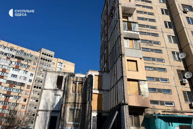 Пошкоджений будинок в Одесі внаслідок атаки 2 березня 2024 року. 24 лютого 2025 року. Суспільне Одеса