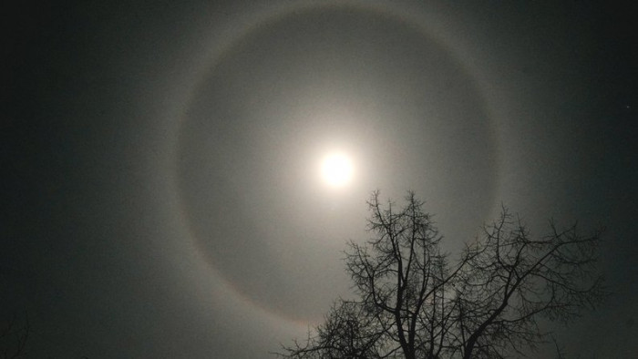 Ввечері 12 лютого у небі над Харковом спостерігали гало навколо Місяця.