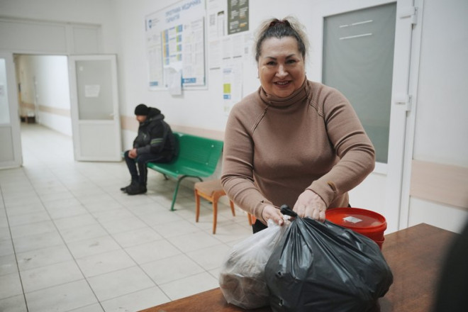 Їжу розводять по восьми лікарнях міста. Відділення нейрохірургії отримує таку допомогу з початку вторгнення РФ, розповідає старша медсестра Людмила Гордієнко.