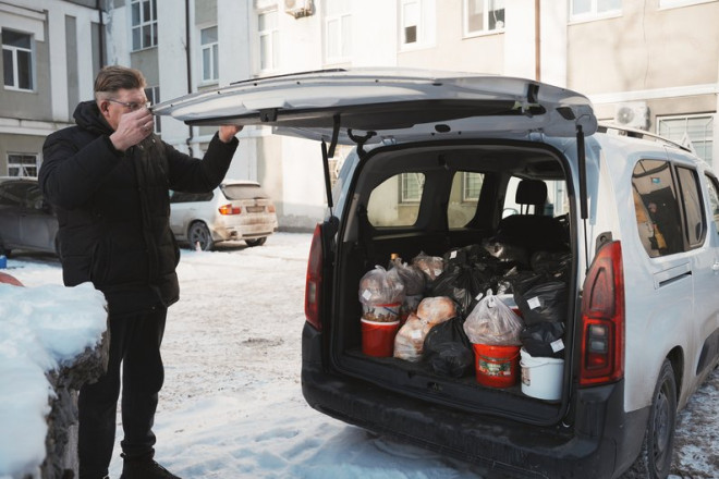 Волонтери фонду “Пекельна кухня” готують по 100 порцій гарячих обідів для восьми лікарень Харкова, лютий 2025 року. Суспільне Харків/Вікторія Якименко