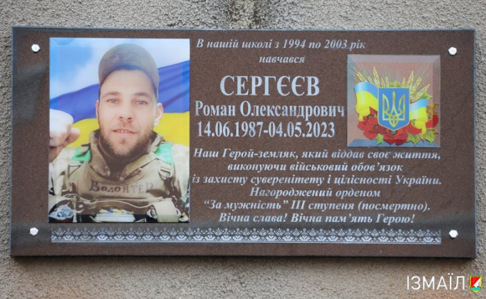 У місті Ізмаїл, що на Одещині, відкрили меморіальну дошку на честь загиблого військового Романа Сергєєва з позивним "Волонтер". Він загинув у Луганській області під час виконання бойового завдання.