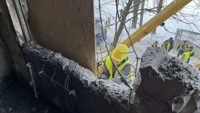 "Постраждало 605 вікон, дірка у фасаді, 61 двері, 61 балкон. Також у ліцеї пошкоджено 96 вікон. На Північній Салтівці 102 багатоквартирних житлових будинки, з них 98 зазнавали пошкоджень внаслідок обстрілів. Проламом у стіні будуть займатися фахівці, потрібно дивитися, які пошкодження безпосередньо конструкцій. Все, що можна було запустити вночі — ми запустили: світло, вода, теплоносій, ліфт у цьому під’їзді. У тих квартирах, які залиті водою внаслідок ліквідації пожежі, поки немає світла, газу та опалення", — розповіла Казанжиєва.