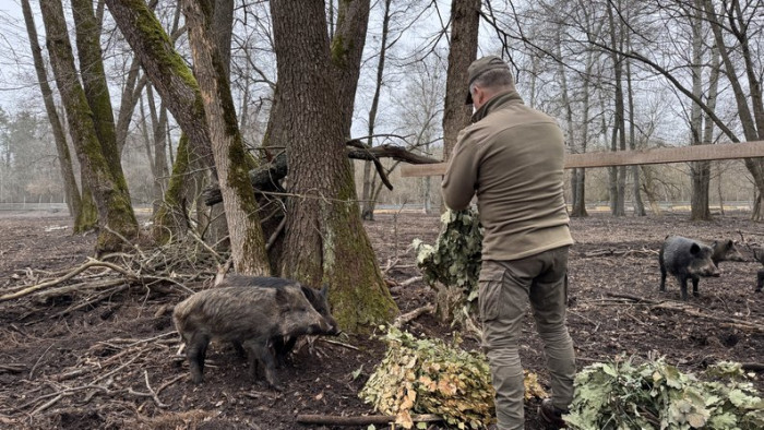 Єгер розкладає листяні віники для диких кабанів. Суспільне Харків