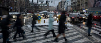 Люди на пішохідному переході на Хрещатику в Києві. Суспільне Новини/Олександр Магула У центрі Києва