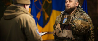 Олексій Запецький (праворуч), військовий 23 ОМБр, на нагородженні почесною нагрудною відзнакою Головкома ЗСУ “Золотий