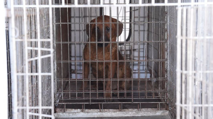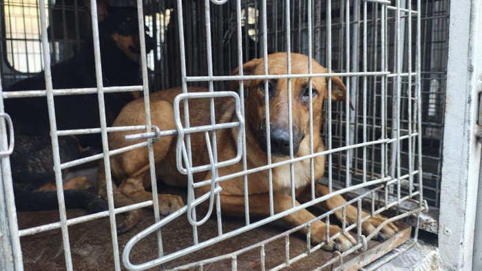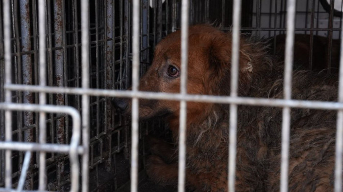 Собака у клітці, Запоріжжя, 12 лютого 2025 року. Суспільне Запоріжжя