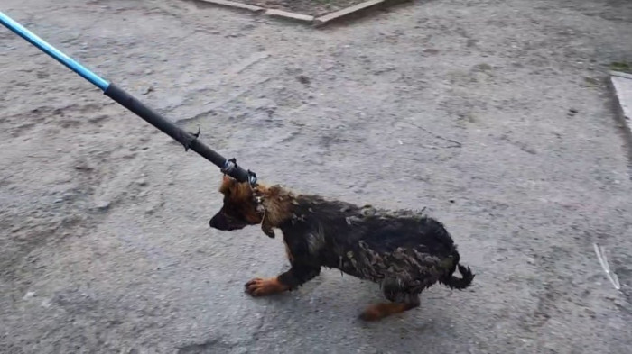 Собака, яку вилучили поліція, комунальники та волонтери в жителя Запоріжжя 12 лютого. Суспільне Запоріжжя