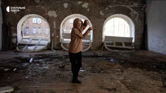 Анна Косяк, власниця студії танців, яка була пошкоджена під російської атаки на Одесу 20 лютого. Суспільне Одеса