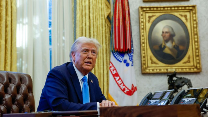 Президент Дональд Трамп спілкується з журналістами після підписання двох виконавчих указів в Овальному кабінеті Білого дому 4 лютого 2025 року у Вашингтоні, округ Колумбія. Getty Images/Anna Moneymaker