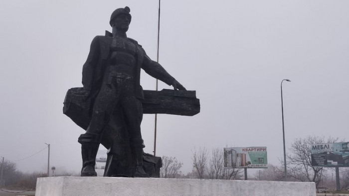 Пам’ятник при в’їзді в Шептицький із демонтованим написом, 11 листопада 2024. Суспільне Львів/Ірина Мочульська