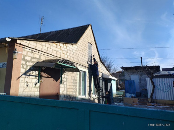 "Були вибиті вікна у двох будинках. Наше завдання – їх зашити, аби не потрапляла волога. Ми це вже зробили. Зашито вісім вікон, дах буде зроблений трохи пізніше. Дах пошкоджений у двох будинках. Інша група швидко перекриє дах".
