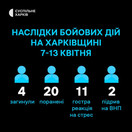 Поранені внаслідок російських обстрілів Харківщини 7-13 квітня
